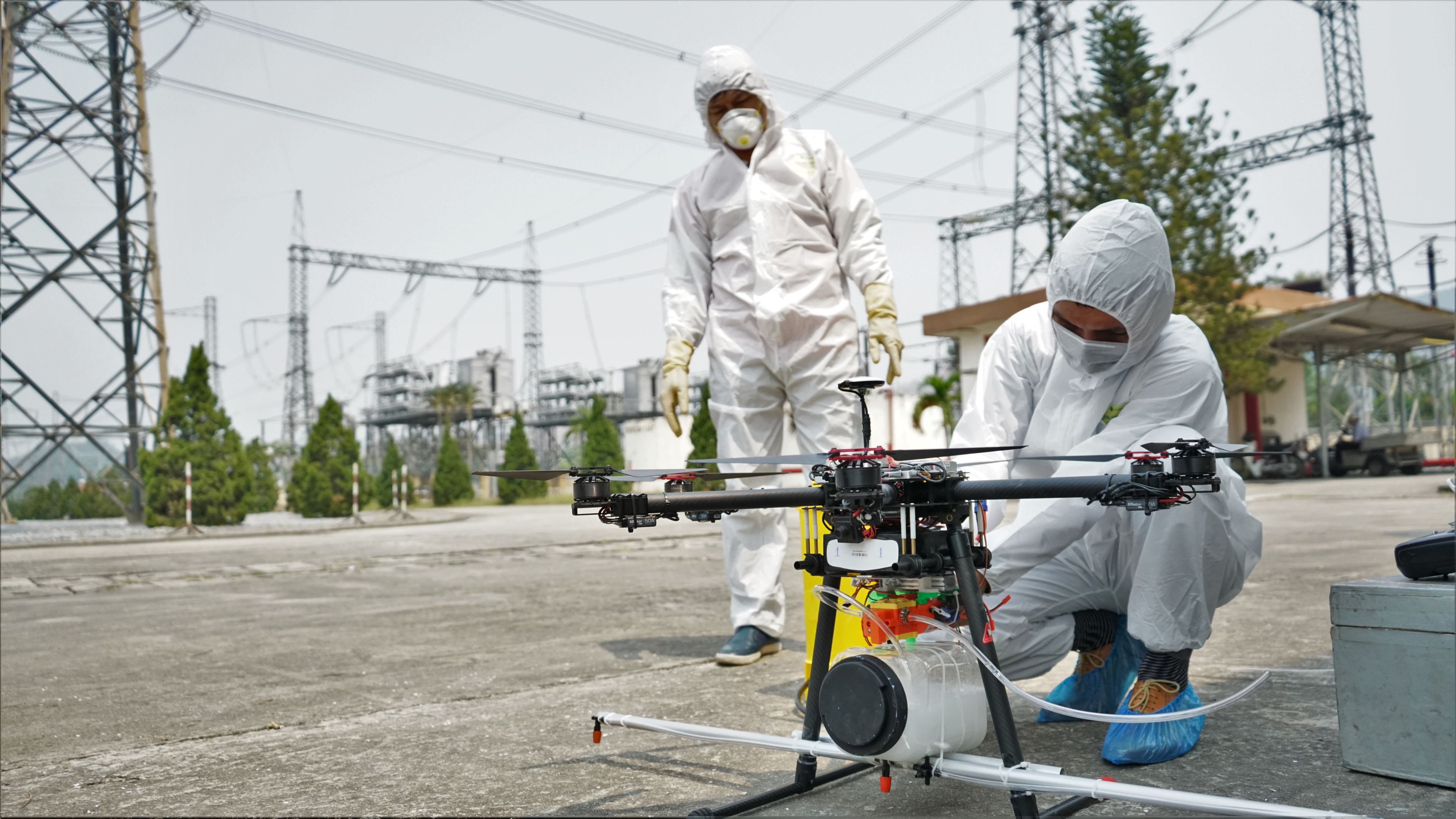 PTC2 đã sử dụng thiết bị bay này để phun thuốc khử khuẩn tại Trạm biến áp 500kV Đà Nẵng. "Rồng y tế" hỗ trợ rất hiệu quả trong việc phun sát khuẩn những vị trí mà các phương tiện thủ công không thể tiếp cận.