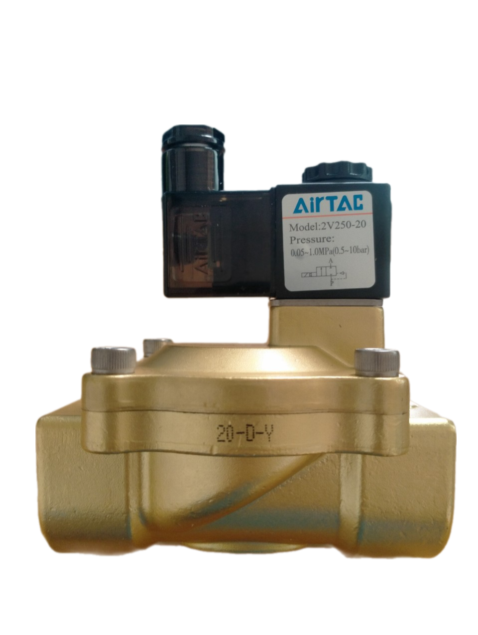 Van điện từ 2V250-20 là Van thường đóng có 2 cổng 2 vị trí gọi tắt là (2/2way) bao gồm 1 cổng (IN), 1 cổng (OUT) và một đầu coil được kích hoạt bằng điện 110-220VAC, được dùng để đóng mở nước, dầu, gas, khí nén, vv..