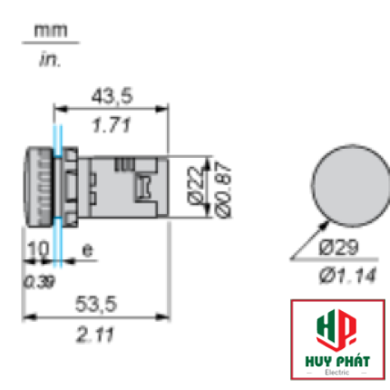 Đường kính lắp : 22mm