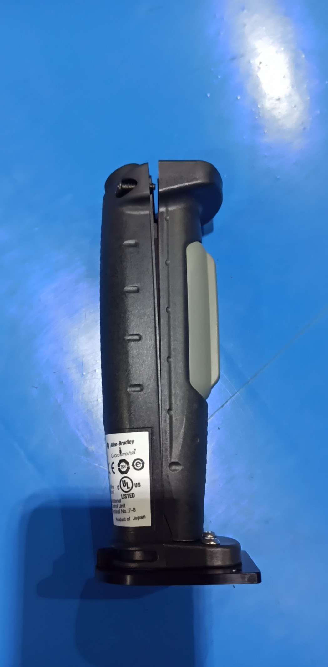 Sử dụng công tắc kích hoạt này từ dòng sản phẩm Allen Bradley để tăng độ an toàn khi tiếp cận khu vực nguy hiểm của máy. Công tắc có ba vị trí, nghĩa là mạch bị ngắt khi không chạm vào cò súng hoặc bị nén quá nhiều. Mạch chỉ hoàn thành khi bộ truyền động ở vị trí chính giữa và người vận hành phải thả lỏng hoặc căng tay khi xảy ra sự kiện bất ngờ. Điều này cắt mạch và dừng máy.