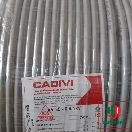 Dây điện lực AV35 Cadivi với đường kính ruột dẫn 6.3mm đáp ứng hoạt động dẫn điện xuyên suốt, chiều dày cách điện PVC 1.4mm tạo nên hệ thống cách điện an toàn, thực hiện tốt chức năng truyền điện và bảo vệ điện áp tốt nhất cho hoạt động tiêu dùng.